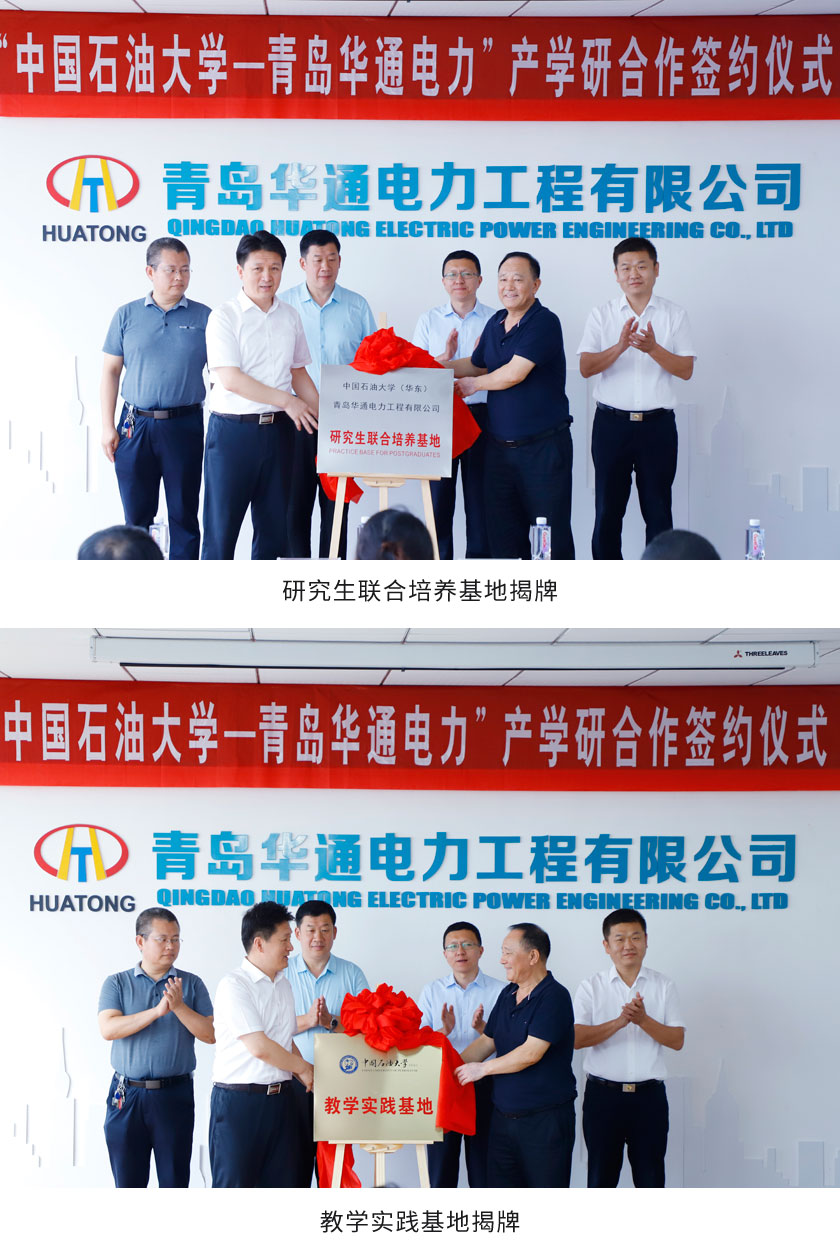 黨的二十大報告提出:“必須堅持科技是第一生產力、人才是第一資源、創新是第一動力。”為促進政產學研緊密結合,打造“校企地”協同創新人才培養體系,9月13日,青島華通電力工程有限公司與中國石油大學(華東)新能源學院舉行產學研合作簽約儀式。濱海街道黨工委副書記、辦事處主任沈久波,黨工委副書記李新,青島華通電力董事長郝玉亮,中國石油大學古鎮口校區綜合辦主任劉濤、學院常務副院長吳明鉑出席儀式。