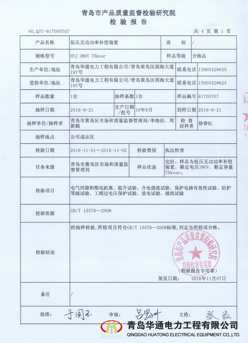 • 低壓無(wú)功功率補(bǔ)償裝置檢驗(yàn)報(bào)告
